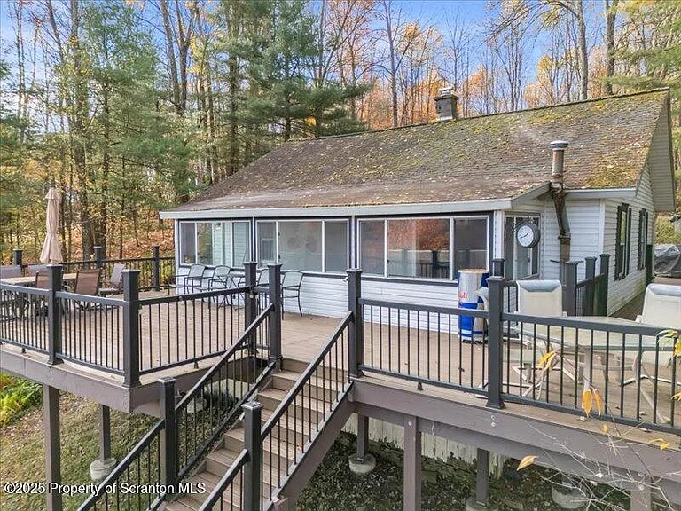 Escape to tranquility in this charming lake home nestled in this scenic countryside of Northeastern Pa. Perfectly positioned near the PA/NY border, this property offers the blend of natural beauty and convenience for year round living or just summertime fun! Deeded lake rights are just seconds away with the lake views just constant. Spacious outdoor decking for entertaining, relaxing and soaking up the sun. Very relaxing inside with great size rooms, living room with wood stove insert, plenty of natural light and just a clean updated interior.Whether you’re sipping coffee on the deck or launching a kayak from the shoreline, this home can deliver for you.